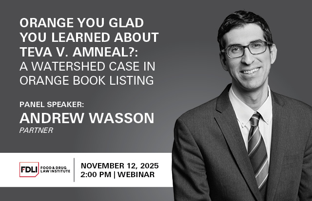 Andrew Wasson serving as a panelist for FDLI’s Orange You Glad You Learned About Teva v. Amneal?: A Watershed Case in Orange Book Listing READ MORE